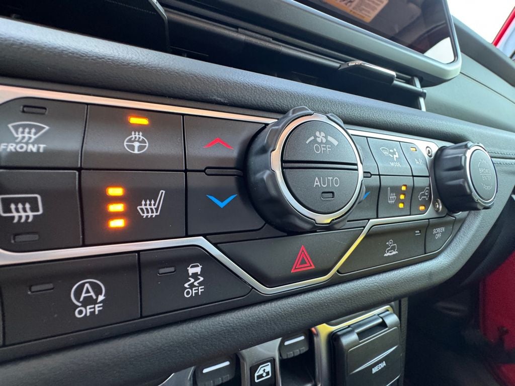 Convenience Group: Emergency/assistance Call; Front Door Locks 2-Door Passive Entry; 2-Piece Body Color Fender Flares; Remote Start System; Cluster 7.0" TFT Color Display; Universal Garage Door Opener; Daytime Running Lamp System; Heated Front Seats; Air Conditioning with Auto Temp Control; Heated Steering Wheel; Corning Gorilla Glass. Technology Group: Google Android Auto; SiriusXM Radio Service; 12.3" Touchscreen Display; Alpine Premium Audio System; USB Host Flip; 400W Inverter; HD Radio; Integrated Center Stack Radio; Rear View Auto Dim Mirror; Bluetooth® Wireless Speaker; Integrated Voice Command with Bluetooth®; Connectivity - US/Canada; Uconnect 5 Navigation with 12.3" Display; GPS Navigation; 4G LTE Wi-Fi Hot Spot; GPS Antenna Input; Media Hub with 2 Charge Only USBs; SiriusXM with 360L; 115V Auxiliary Power Outlet; Connected Travel and Traffic Services; Alexa Built-In; Apple CarPlay. Quick Order Package 24Q High Tide: Leather Wrapped Shift Knob; Premium Door Trim Panel; LT255/75R17C Tires; Power 4-Way Passenger Lumbar Adjust; Power 4-Way Driver Lumbar Adjust; 2-Piece Body Color Fender Flares; High Tide Tailgate and Hood Decals; Power Adjust 8-Way Front Passenger Seat; Integrated Radar Camera Module (IRCM); Security Alarm; Rear Armrest with Cupholder Seat; Hard Seat Back; Advanced Brake Assist; Willys Suspension; Body Color 3-Piece Hard Top; Automatic Headlamps; Deep Tint Sunscreen Windows; 17" X 7.5" Painted Black Wheels; Premium McKinley Trimmed Seats; Full Speed Forward Collision Warning Plus; 97 MPH Vehicle Max Speed Calibration; Power Heated Mirrors; Daytime Running Lamp System; High Tide; Power Adjust 8-Way Driver Seat; Full Length Floor Console Premium Armrest; Premium Wrapped Steering Wheel; Leather Wrapped Park Brake Handle; Sun Visors with Illuminated Vanity Mirrors. Firecracker Red Clearcoat. MOPAR Spray in Bedliner. MOPAR Satin Black Grille. Locking Lug Nuts. **Equipment listed is based on original vehicle build and subject to change. Please confirm the accuracy of the included equipment by calling the dealer prior to purchase.**