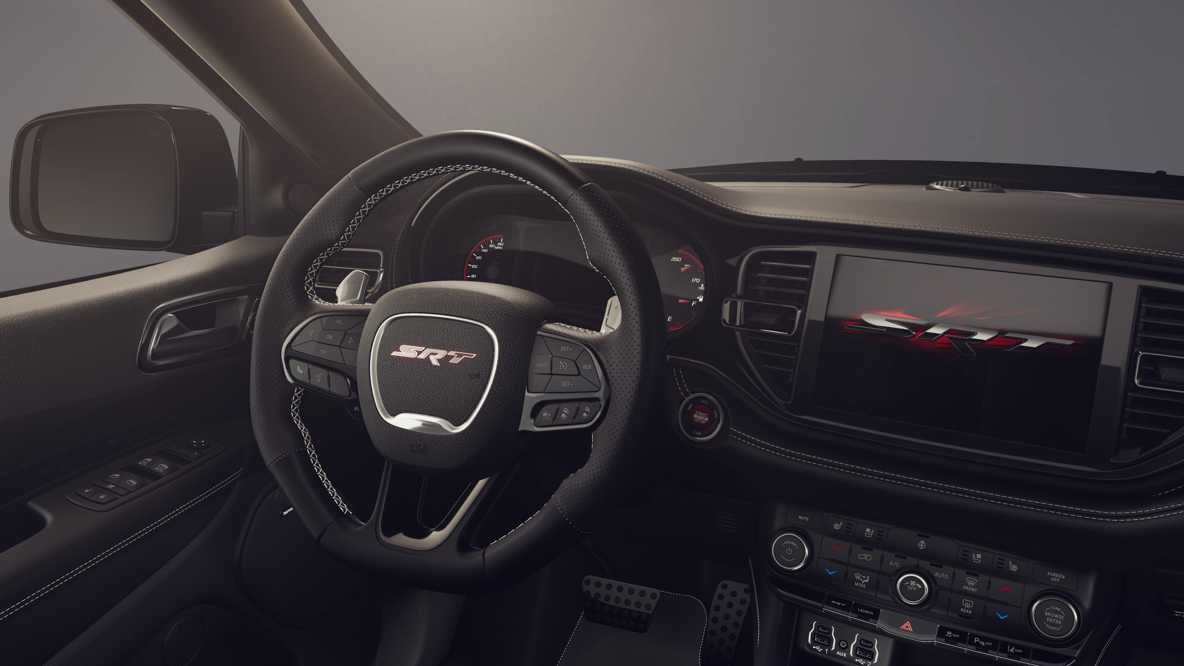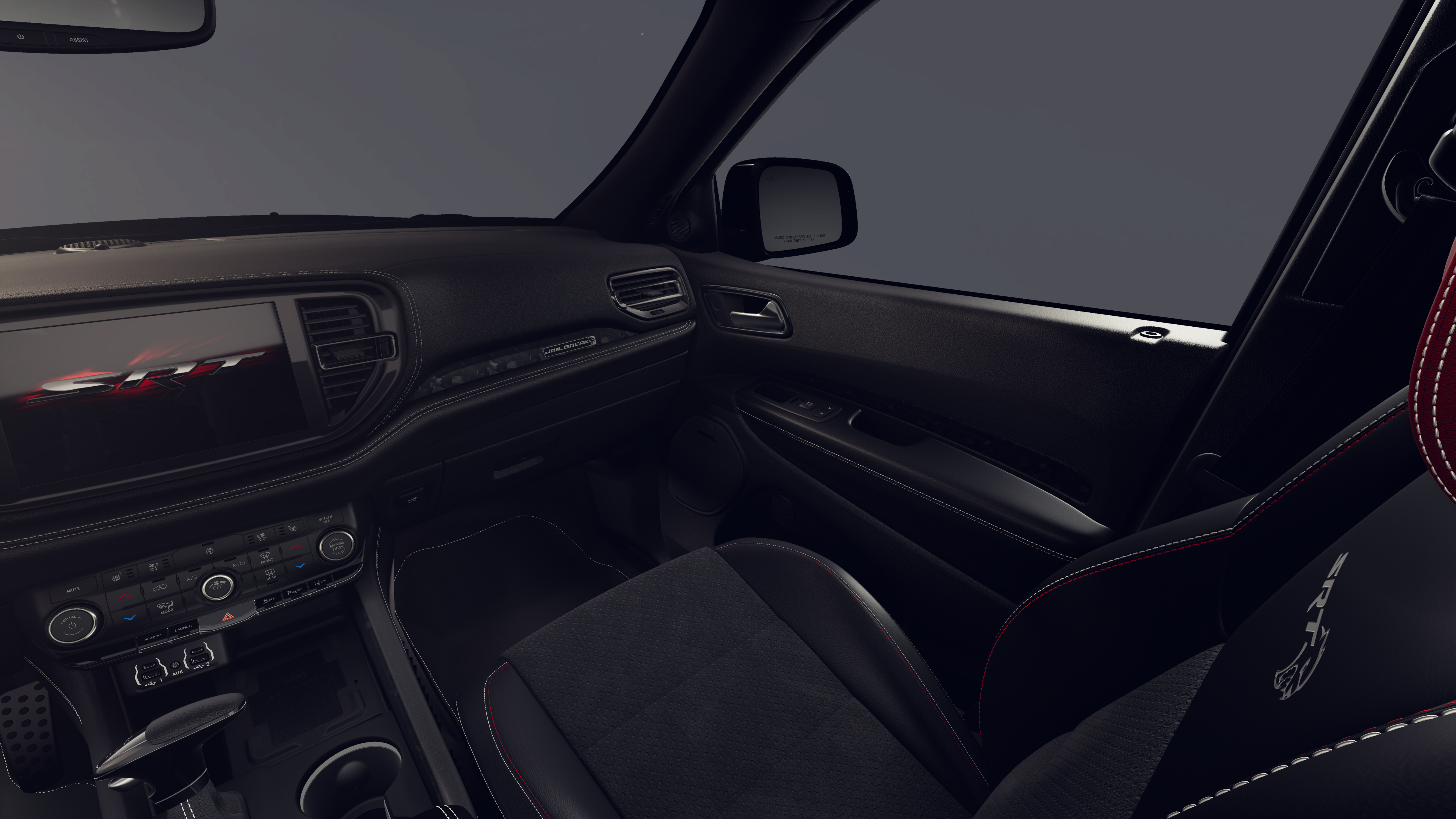 Quick Order Package 2XM Jailbreak: Jailbreak Badge; Forged Carbon Fiber Interior Accents. Premium Group: 19 Harman/kardon Amplified Speakers with Subwoofer; Advanced Brake Assist; Auto High Beam Headlamp Control; Premium Door Trim Panel; 825 Watt Amplifier; Adaptive Cruise Control with Stop; Supercharged Sill Plate; Premium Instrument Panel; Full Speed Forward Collision Warning Plus; Lane Departure Warning Plus. Hammerhead Gray Seats: 2nd Row Fold/tumble Captain Chairs. Gray Metallic Badges: Satin Black Dodge Tail Lamp Badge; Gloss Black Badges. 2nd Row Fold/tumble Captain Chairs. Power Sunroof. 20" X 10" Forged Y-Spoke Satin Black Wheels. 295/45ZR20 BSW 3 Season Tires. Black Brake Calipers. Night Moves. Hammerhead Gray Seat Belts. Eclipse Black Exhaust Tips. **Equipment listed is based on original vehicle build and subject to change. Please confirm the accuracy of the included equipment by calling the dealer prior to purchase.**