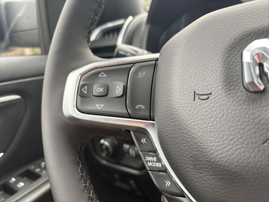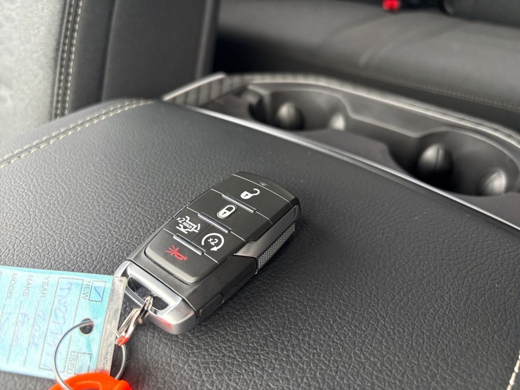 Quick Order Package 27Z Big Horn. Big Horn Level 2 Equipment Group: Google Android Auto; SiriusXM Radio Service; USB Host Flip; Power Adjustable Pedals; Leather Wrapped Steering Wheel; Integrated Voice Command with Bluetooth®; 12" Touchscreen Display; Glove Box Lamp; Auto Power-Folding Mirrors; 115V Auxiliary Rear Power Outlet; Media Hub with 2 Charge Only USBs; Heated Front Seats; Security Alarm; Black Premium Power Mirrors; Apple CarPlay; Premium Overhead Console; 9 Amplified Speakers with Subwoofer; Disassociated Touchscreen Display; Body Color Fender Flares; Remote Tailgate Release; 115V Auxiliary Power Outlet; LED Dome Lamp with On/off Switch; Universal Garage Door Opener; 2nd Row in Floor Storage Bins; Sun Visors with Illuminated Vanity Mirrors; LED Footwell Lighting; Rear Window Defroster; Integrated Center Stack Radio; Rear View Auto Dim Mirror; Rear Power Sliding Window; Connectivity - US/Canada; GPS Navigation; 4G LTE Wi-Fi Hot Spot; GPS Antenna Input; Overhead LED Lamps; Exterior Mirrors with Heating Element; Auto Dim Exterior Driver Mirror; SiriusXM with 360L; Global Telematics Box Module; Connected Travel and Traffic Services; Heated Steering Wheel; Black Exterior Mirrors; Configurable Drive Mode; 400W Inverter; HD Radio; Deluxe Cloth Bucket Seats; Uconnect 5 Navigation with 12.0" Display Radio; Exterior Mirrors with Supplemental Signals; Steering Wheel Mounted Audio Controls; Exterior Mirrors Courtesy Lamps; Air Conditioning ATC with Dual Zone Control; Cluster 7.0" TFT Color Display; Convex Wide-Angle Exterior Mirror Insert. Sport Appearance Package. Bed Utility Group: MOPAR Spray in Bedliner; MOPAR Deployable Bed Step; MOPAR 4 Adjustable Cargo Tie-Down Hooks; Pick-Up Box Lighting; Exterior 115V AC Outlet. Quick Order Package 23Z Big Horn. 20" X 9" Aluminum Chrome Clad Wheels. Dual-Pane Panoramic Sunroof. 9 Amplified Speakers with Subwoofer. Anti-Spin Differential Rear Axle. Trailer Brake Control. Silver Zynith. 3.92 Rear Axle Ratio. **Equipment listed is based on original vehicle build and subject to change. Please confirm the accuracy of the included equipment by calling the dealer prior to purchase.**