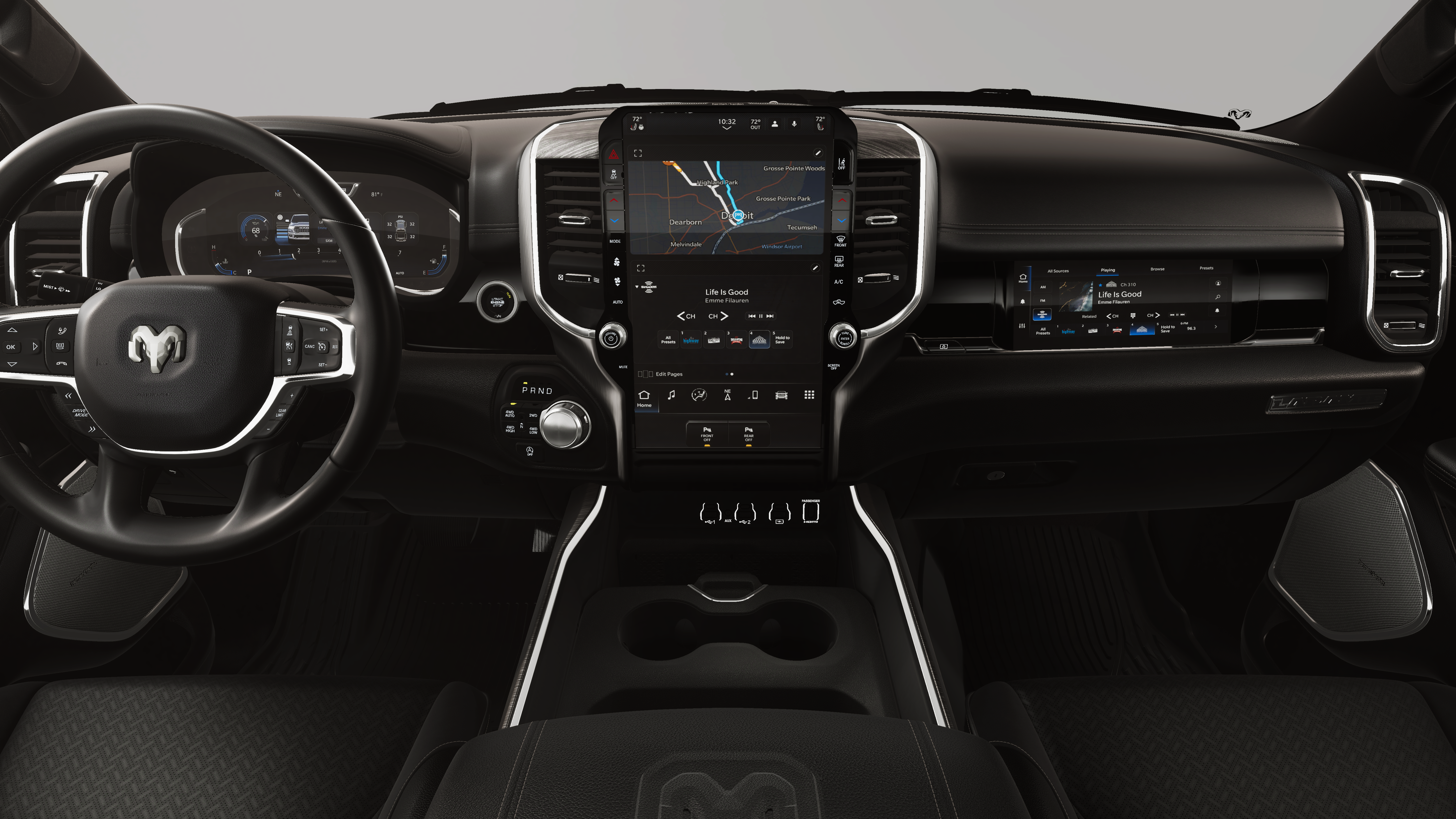 Quick Order Package 27H Laramie. Laramie Level 2 Equipment Group: SiriusXM Radio Service; USB Host Flip; Rain Sensitive Windshield Wipers; 14.4" Touchscreen Display; Integrated Center Stack Radio; Front Passenger Interactive Display; Integrated Voice Command with Bluetooth®; Connectivity - US/Canada; Uconnect 5 Nav with 14.4" Display; GPS Navigation; 4G LTE Wi-Fi Hot Spot; Harman/kardon 19 Speaker Premium Sound; SiriusXM with 360L; Connected Travel and Traffic Services; Cluster 12" TFT Color Display; Power Tailgate. Night Edition: Black Headlamp Bezels; Auto Power-Folding Mirrors; 22" X 9" Forged Aluminum Wheels; Exterior Mirrors with Heating Element; Proximity Approach/departure Lamps; Auto Dim Exterior Driver Mirror; Anti-Spin Differential Rear Axle; Accent Color Door Handles; Black Interior Accents; Body Color Front Bumper; Grille Surround 3 Black Texture 2 Black; Body Color Rear Bumper with Step Pads; RAM Grille Badge - Black; Black Painted Exterior Mirrors Caps; Exterior Mirrors Approach Lamps; Accent Color Premium Power Mirrors; Exterior Mirrors with Supplemental Signals; Sport Performance Hood; Exterior Mirrors Courtesy Lamps; Black Exterior Truck Badging; Accent Color Tailgate Handle; Exterior Mirrors with Memory; Dual Exhaust with Black Tips; Convex Wide-Angle Exterior Mirror Insert; Black Tail Lamp Bezels. 22" X 9" Forged Aluminum Wheels. Dual-Pane Panoramic Sunroof. Power Deployable Running Boards. Ivory White Tri-Coat PC. Anti-Spin Differential Rear Axle. MOPAR Front and Rear Rubber Floor Mats. 3.92 Rear Axle Ratio. **Equipment listed is based on original vehicle build and subject to change. Please confirm the accuracy of the included equipment by calling the dealer prior to purchase.**