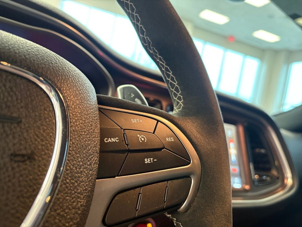 Quick Order Package 26M. Leather Rear Seat Option: Child Seat Upper Tether Anchorages; Demon Logo Laguna/Alcantara Seat; Center Rear 3-Point Seat Belt; Heated Front Seats; Rear 60/40 Folding Seat; Luxury Front and Rear Floor Mats; Rear Armrest with Cupholder Seat. Leather Seats Comfort Audio Group: 18 Speakers Premium Audio System; Demon Logo Laguna/Alcantara Seat; Power Tilt/telescope Steering Column; Front Passenger Seat Belt Alert; Front Passenger Seat; Heated Front Seats; Harman/kardon GreenEdge Amp; Bright Pedals; Heated Steering Wheel; Front Floor Mats. Demon Vehicle Storage Package: MOPAR Battery Manager; Demon Car Cover. Painted Black Satin Hood. Gas Guzzler Tax. Red Seat Belts. Trunk Carpet Kit. **Equipment listed is based on original vehicle build and subject to change. Please confirm the accuracy of the included equipment by calling the dealer prior to purchase.**