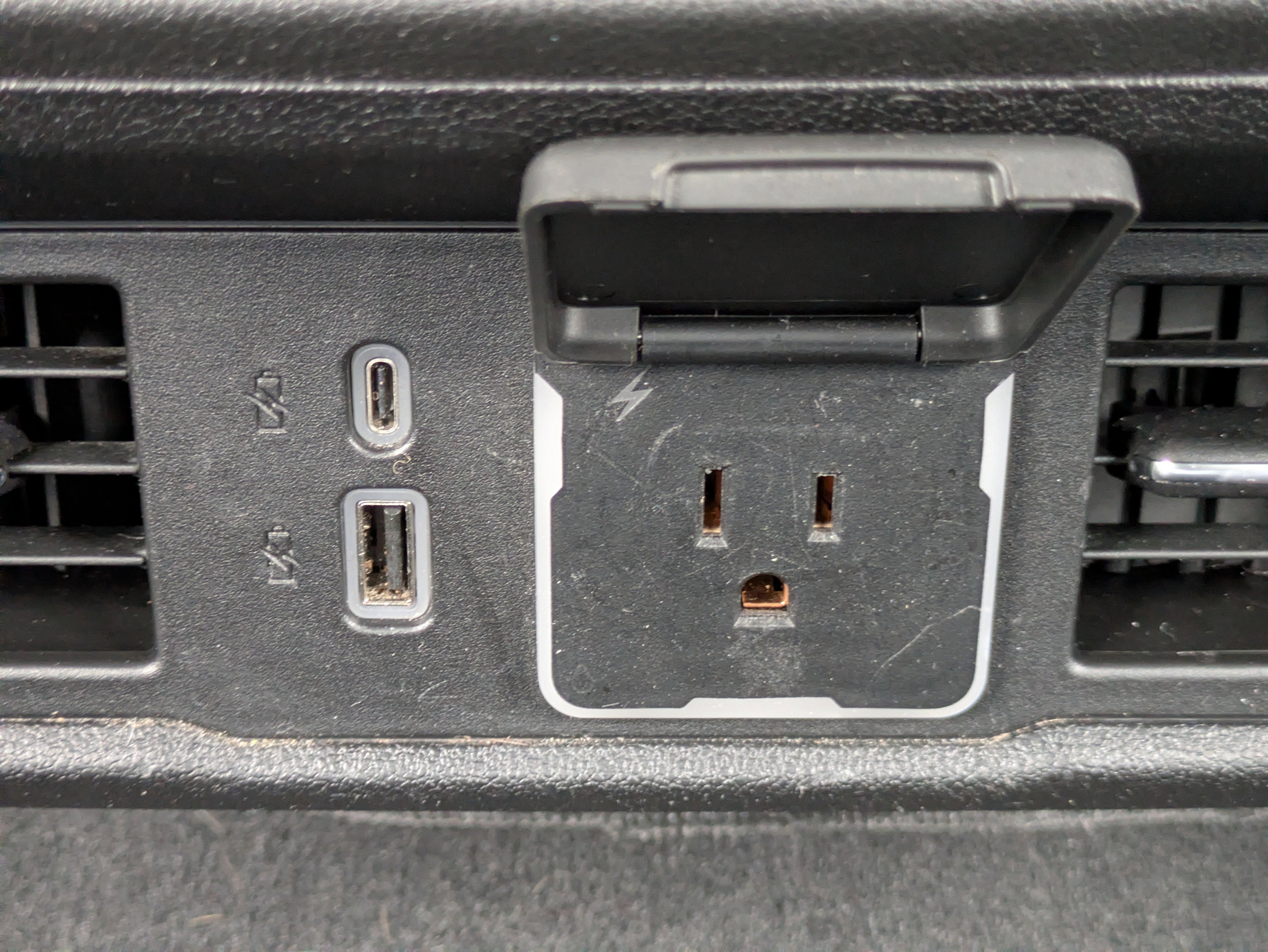 - Power outlet, instrument panel, 120-volt (400 watts shared with (KC9) bed mounted power outlet) (Vehicles built prior to 9-19-22 will include Cab mounted power outlet. Certain vehicles built on or after 9-19-22 may be forced to include (08R) Not Equipped with functional Cab or Bed Power Outlets, which removes the Cab and Bed power outlet functionality. See dealer for details or the window label for the features on a specific vehicle. Vehicles equipped with (08R) Not Equipped with functional Cab or Bed Power Outlets, will be eligible for later dealer retrofit to enable functionality. See dealer for details or the window label for the features on a specific vehicle.) (Deleted when (RG4) Fleet LT Base Content Package Delete is ordered. Vehicles built prior to 9-19-22 will include Cab mounted power outlet. Certain vehicles built on or after 9-19-22 may be forced to include (08R) Not Equipped with functional Cab or Bed Power Outlets, which removes the Cab and Bed power outlet functionality. See dealer for details or the window label for the features on a specific vehicle. Vehicles equipped with (08R) Not Equipped with functional Cab or Bed Power Outlets, will be eligible for later dealer retrofit to enable functionality. See dealer for details or the window label for the features on a specific vehicle.)