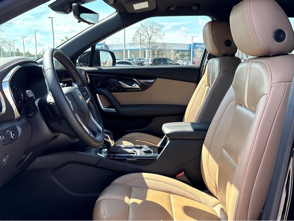 Vaden is pleased to offer this Black 2024 Chevrolet Blazer Premier with Jet Black/Maple Sugar Leather... Beautifully equipped with Driver Confidence II Package (Adaptive Cruise Control, Enhanced Automatic Emergency Braking, HD Surround Vision, Rear Camera Mirror, Rear Camera Mirror Washer, and Safety Alert Seat), Preferred Equipment Group 0HD (Heated Steering Wheel), 155 Amp Alternator, 170 Amp Alternator, 4-Wheel Disc Brakes, 6-Way Power Front Passenger Seat Adjuster, 8 Speakers, 8-Way Power Driver Seat Adjuster, ABS brakes, Air Conditioning, Alloy wheels, AM/FM radio: SiriusXM with 360L, Apple CarPlay/Android Auto, Auto High-beam Headlights, Auto-dimming door mirrors, Auto-dimming Rear-View mirror, Automatic temperature control, Bose Premium 8-Speaker Audio System Feature, Brake assist, Bumpers: body-color, Child-Seat-Sensing Airbag, Compass, Delay-off headlights, Driver door bin, Driver vanity mirror, Dual front impact airbags, Dual front side impact airbags, Electronic Stability Control, Emergency communication system: OnStar and Chevrolet connected services capable, Four wheel independent suspension, Front & Rear Black Bowties, Front anti-roll bar, Front Bucket Seats, Front Center Armrest, Front dual zone A/C, Front reading lights, Fully automatic headlights, Garage door transmitter, Heated door mirrors, Heated Driver & Front Passenger Seats, Heated front seats, Heated steering wheel, Illuminated entry, Knee airbag, Leather Shift Knob, Leather steering wheel, Low tire pressure warning, Navigation System, Occupant sensing airbag, Outside temperature display, Overhead airbag, Overhead console, Panic alarm, Passenger door bin, Passenger vanity mirror, Perforated Leather-Appointed Seat Trim, Power door mirrors, Power Driver Lumbar Control, Power driver seat, Power Liftgate, Power Panoramic Tilt-Sliding Sunroof, Power passenger seat, Power steering, Power windows, Premium audio system: Chevrolet Infotainment 3 Premium, Radio data system, Radio: Chevrolet Infotainment 3 Premium System, Rear anti-roll bar, Rear reading lights, Rear seat center armrest, Rear window defroster, Rear window wiper, Remote keyless entry, Ride & Handling Suspension, Security system, SiriusXM w/360L, Speed control, Speed-sensing steering, Split folding rear seat, Spoiler, Steering wheel mounted audio controls, Tachometer, Telescoping steering wheel, Tilt steering wheel, Traction control, Trip computer, Turn signal indicator mirrors, Variably intermittent wipers, Voltmeter, and Wheels: 20" Medium Android Machined-Face Aluminum!