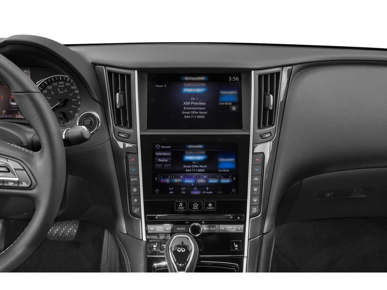 - Radio: INFINITI InTouch Dual HD Display System -inc: 16 speaker Bose Performance Series audio w/Bose Centerpoint simulated surround, wireless Apple CarPlay, Siri Eyes Free, Android Auto, Bluetooth® hands-free phone system w/text messaging assistant, voice recognition for audio, Bluetooth® and vehicle information, streaming audio via Bluetooth®, 2 illuminated USB connection ports (1 type A, 1 type C), auxiliary audio input, HD Radio, SiriusXM radio w/advanced audio features w/3 month complimentary trial and Wi-Fi hotspot