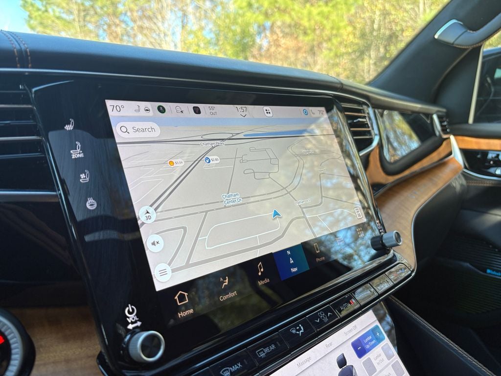 Never get into a cold vehicle again with the remote start feature on this vehicle. Protect the vehicle from unwanted accidents with a cutting edge backup camera system. The installed navigation system will keep you on the right path. Our dealership has already run the CARFAX report and it is clean. A clean CARFAX is a great asset for resale value in the future. The vehicle offers Android Auto for seamless smartphone integration. This 2024 Jeep Grand Wagoneer L has automated speed control that adjusts to maintain a safe following distance, enhancing highway driving convenience. The leather seats in this model are a must for buyers looking for comfort, durability, and style. Bluetooth® technology is built into it, keeping your hands on the steering wheel and your focus on the road. This vehicle is a certified CARFAX 1-owner. This unit is pure luxury with a heated steering wheel. Apple CarPlay: Seamless smartphone integration for the vehicle - stay connected and entertained on the go!
